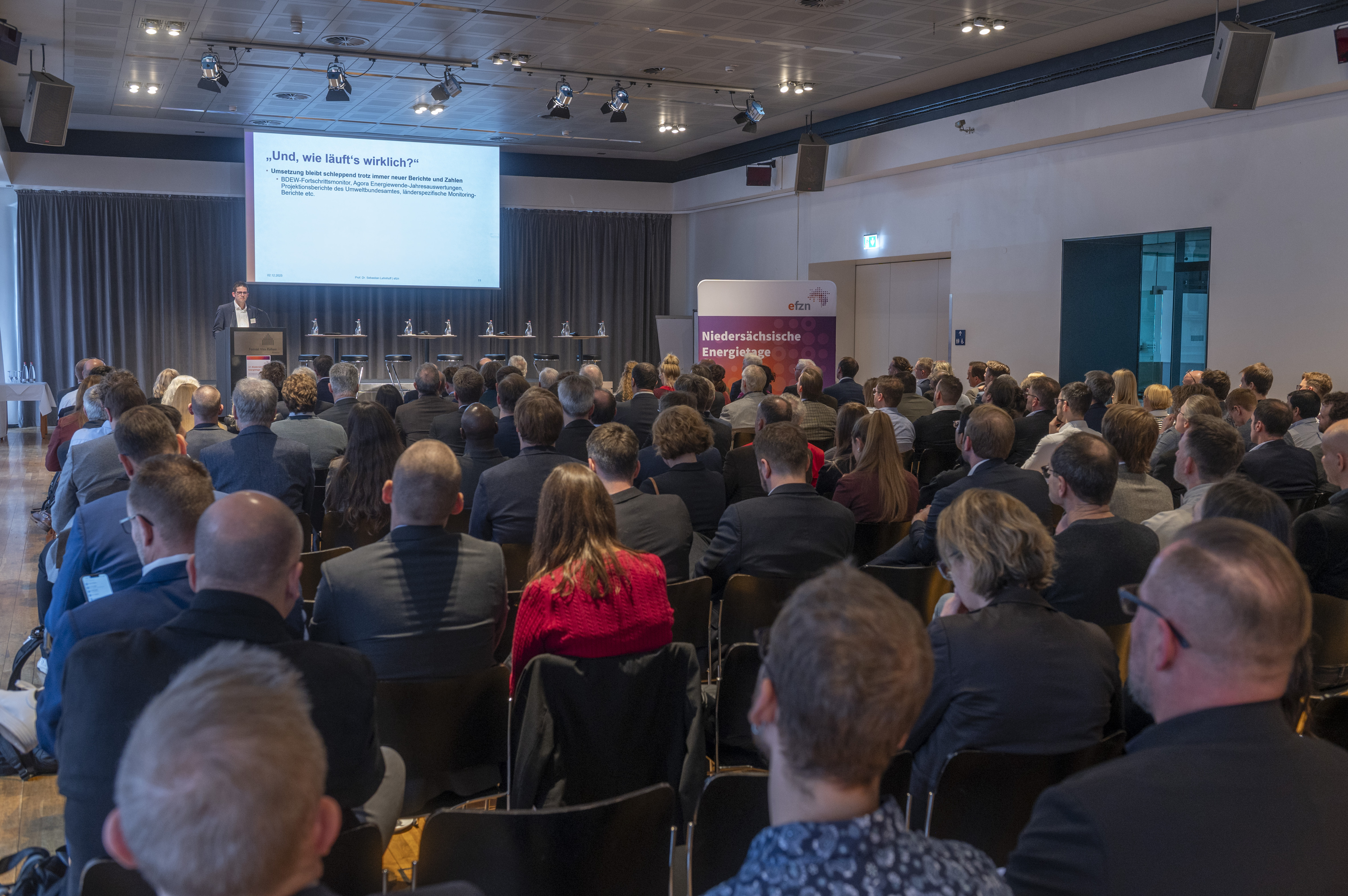 Belastung oder Booster – so einfach ist es nicht, auch wenn der aktuelle öffentliche Diskurs dies glauben machen will. Wettbewerbsfähigkeit gegen Energiewende, Standortpolitik gegen Klimaschutzpolitik, Wachstum gegen Wandel. Die öffentliche Debatte ist geprägt von scheinbar unvereinbaren Gegensätzen – doch die Realität ist weitaus vielschichtiger. Sich diesen vermeintlich unauflösbaren Gegensätzen mit sachlich-wissenschaftlichem Blick nähern, Perspektiven intensiv und differenziert beleuchten und diskutieren; wenn möglich, sogar eine Brücke schlagen zwischen den scheinbar unvermittelbaren Positionen: Das war das Ziel der diesjährigen Niedersächsischen Energietage (NET) am 2. und 3. Dezember 2025 in Hannover.
